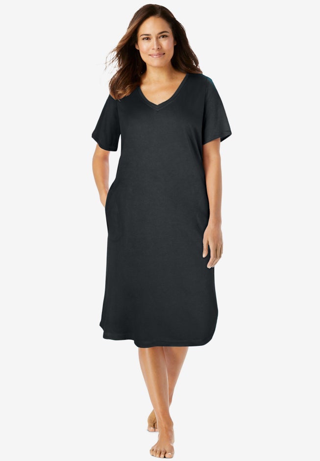 • Enjoy ultimate comfort with this delightful lounge dress featuring short sleeves and V-neck.