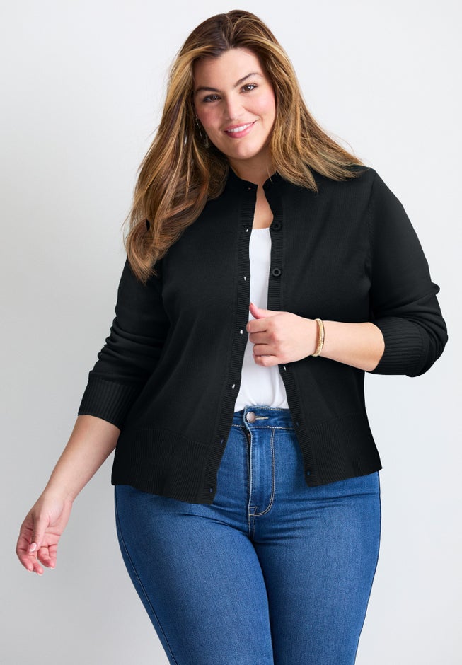 This button-front sweater cardigan is designed with a classic crew neckline. The soft knit fabric provides warmth and ease, while the ribbed cuffs and hem add a structured touch. Perfect for layering over your favorite tops, this versatile cardigan is a must-have for effortless, everyday style.