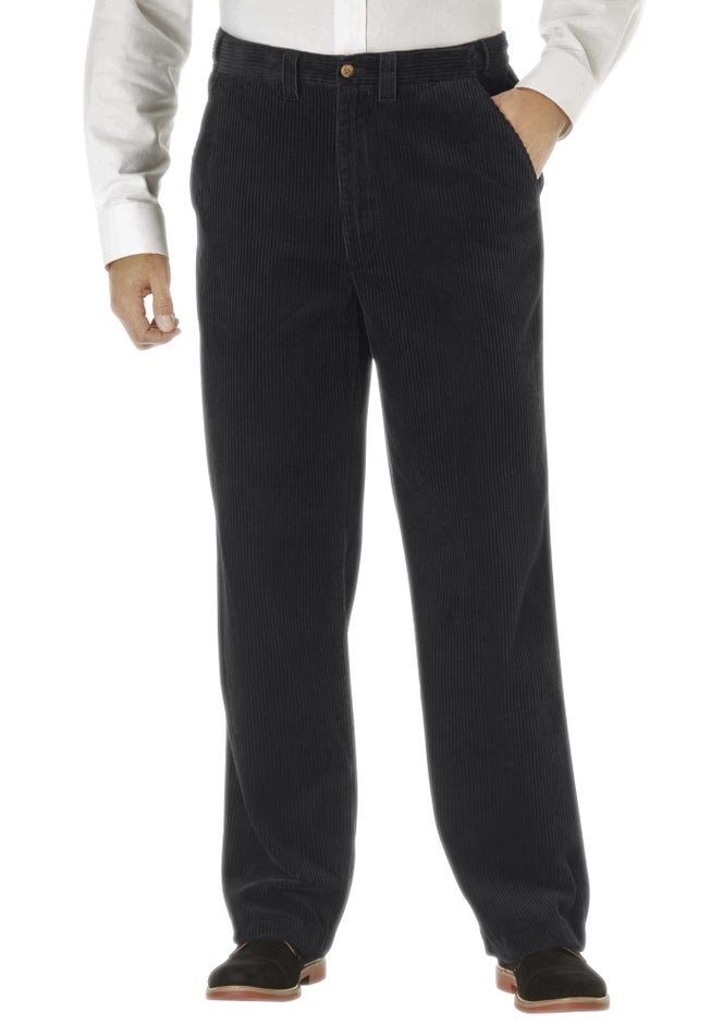 Finely-woven Six-Wale Corduroy Plain Front Pants keep their crisp look and stay comfortable with expandable waistbands. Front slash pockets, back button-through besom pockets.