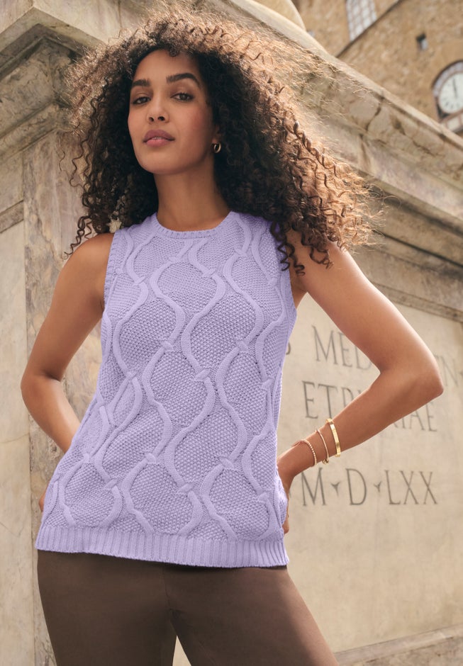 Polished and sophisticated in a classic cable knit, the Jessica London women’s plus size Sleeveless Cable Shell is crafted in a flattering straight silhouette. Pair it with the matching Elbow Sleeve Cable Cardigan for a coordinating look that always delivers.