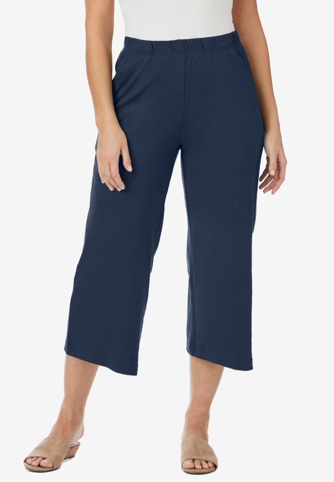 Our soft knit in a comfortable, cropped wide leg silhouette. Pair these flattering, grab-and-go bottoms with a knit tee and denim jacket for easy, all-day wear.