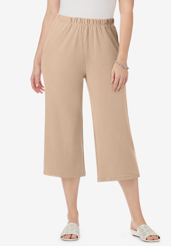 Our soft knit in a comfortable, cropped wide leg silhouette. Pair these flattering, grab-and-go bottoms with a knit tee and denim jacket for easy, all-day wear.