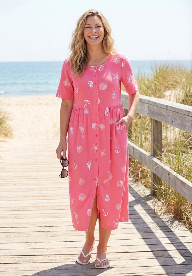 • Features a charming allover print for a fun, seaside look.