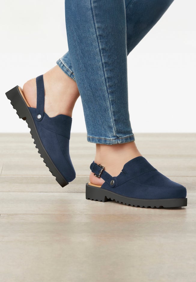 • Convertible strap can be worn as a mule or a sling