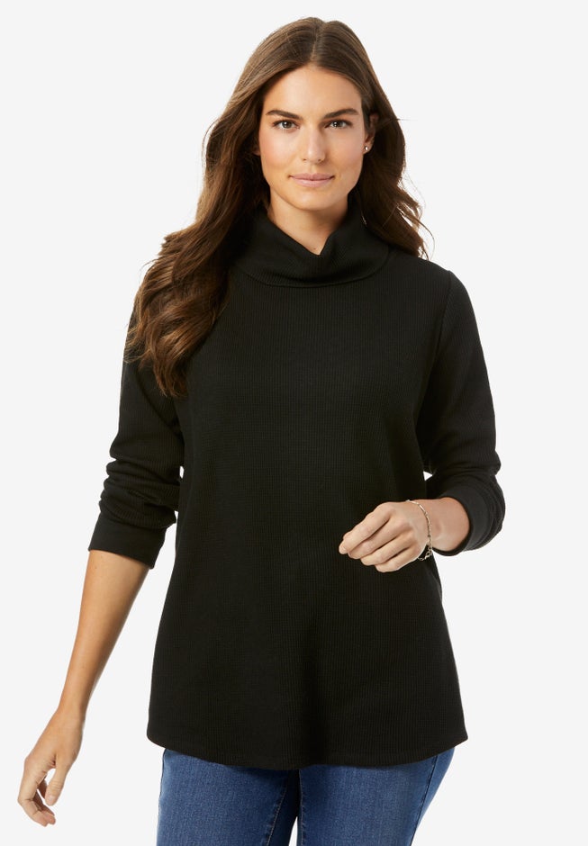 Get comfy in our best-selling thermal knit turtleneck! This textured thermal turtleneck accented with rib knit sleeve cuffs. Our thermal tees are lightweight and comfortable with a relaxed fit that feels great all day long. Plus, they’re perfect for layering. Stay extra cozy with this foldover turtleneck style.