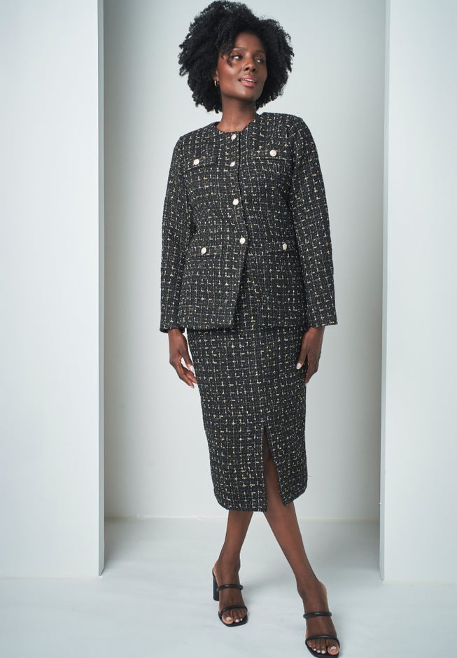 Nothing says fall-forward outfitting like sophisticated tweed — so we crafted our favorite skirt suit in this timeless fabric! This set features an always-feminine flared lady jacket and matching pencil skirt. Wear them together or mix them in with other workwear favorites in your closet!