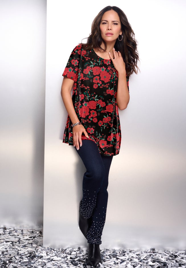 Spoil yourself a bit with the rich color and luxe comfort with our Velour Swing Tee. Its plush, soft fabric keeps it comfortable to wear no matter the occasion. Pair it with leggings for a casual day out or with trousers for a more polished look.