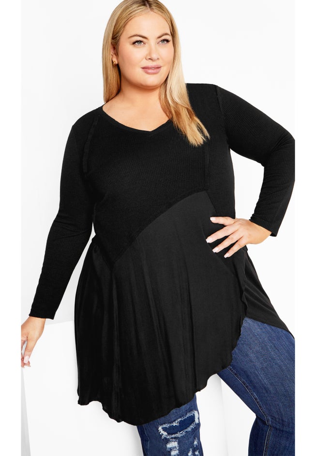 Exuding feminine flair with an asymmetrical ruffle hem, slip into the Waffle Panel Top and love your curves! Featuring long sleeves and a V-neckline, this top is a sure magnet for attention.